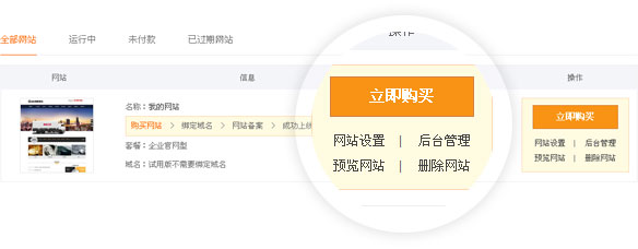 4.【預覽網站】:點擊后可預覽試用中的站點5.【刪除網站】:點擊后可刪除試用中的站點